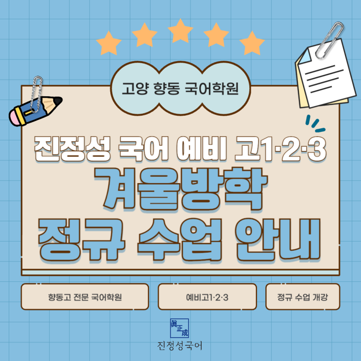 [고양 향동 국어학원] 국어의 완벽한 시작과 결실, 진정성 국어 예비 고1·2·3 겨울방학 정규 수업 안내