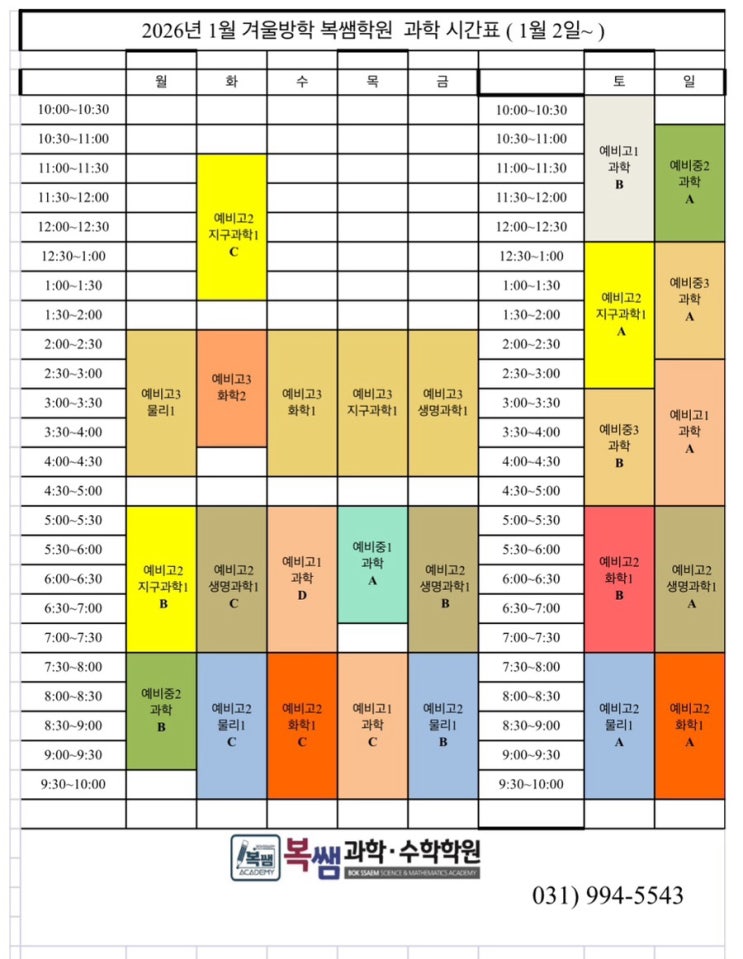 2026년 겨울방학 시간표