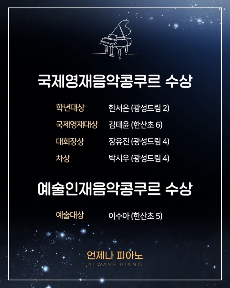 덕이동 피아노 | 2026년 언제나피아노 콩쿠르 수상 소식✨