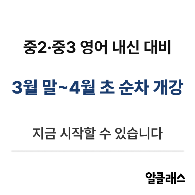 일산 중2·중3 영어 내신 대비 시작 안내 (3월 말~4월 초 순차 개강)