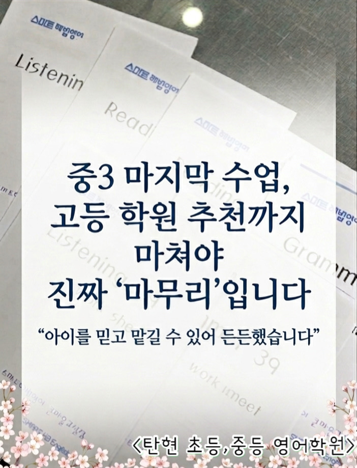 <탄현 초등,중등 영어 학원> 중3 마지막 수업, 고등 학원 추천까지 마쳐야 진짜 '마무리'입니다.