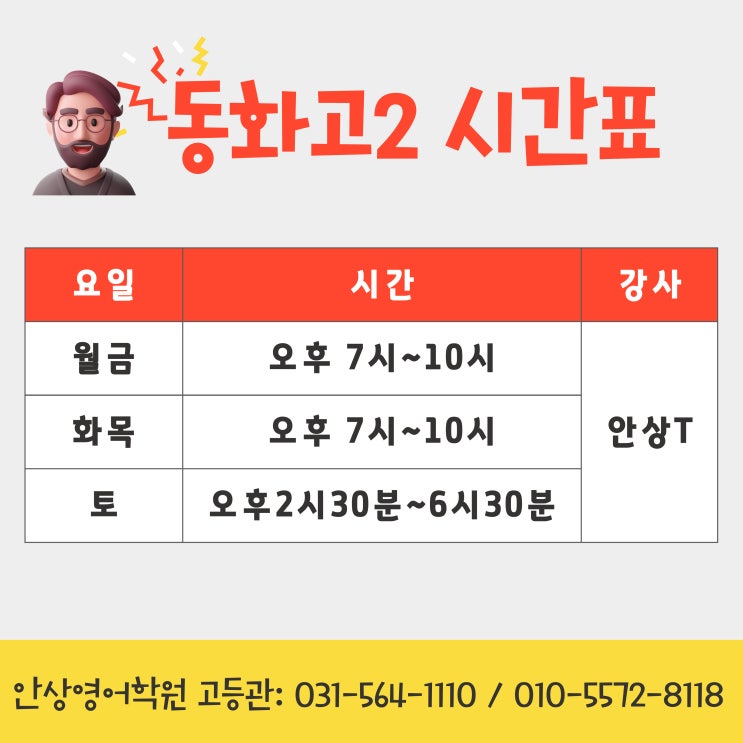 동화고2 토요일반을 개강합니다. 개강일: 3/21(토) 수업시간: 오후2시30분~6시30분 시간을 참고하시어 접수 하시기 바랍니다. 동화고2 내신반 문의 031-564-1110 010-5572-8118 <img src="https://blogthumb.pstatic.net/MjAyNjAzMTNfMTYg/MDAxNzczMzkzNDIwODM5.WzvdOEop9KfTlaDo3HLxbwRmLM63DW6f6uTSnNmLEAQg.GcPEf8KYFH7oDybVAAe47BCXxR5RiSUUYmQMha-8VrIg.JPEG/%BC%F6%B4%C9%BD%C5%C8%AD-%C1%A4%BD%C3%B9%DD-001_%281%29.jpg?type=s3" />