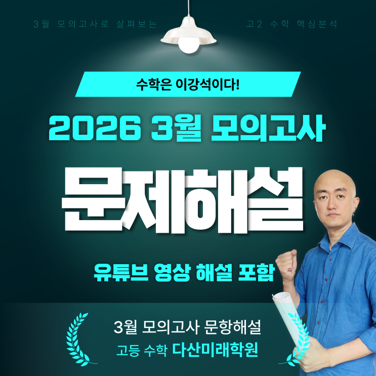 안녕하세요. 다산미래학원의 이강석입니다. 3월 모의고사가 끝났네요. 학부모님들도 "우리 아이 3월 모의고사 결과, 어떻게 받아들여야 하지?" 하고 걱정되시는 분들께 도움이 될 내용을 담았습니다. 이번 시험은 단순한 모의고사가 아닌, 고등학교 1학년 전 과정을 총망라한 시험이자, 본격적인 수능 준비의 출발선이라고 할 수 있습니다. 이 분석을 통해 앞으로의 학습 방향을 함께 고민해봅시다. (유튜브 강석수학에 이번 모의고사 주요 문항에 대한 해설이 있습니다. ) 2026년 3월 고2 수학 모의고사 완전 분석 수능 공통과목 체제 첫 관문 · 고1 전 과정 총괄 점검 ✅ 이 시험, 왜 중요한가요? 고1 전 과정 범위로 체감....... <img src="https://blogthumb.pstatic.net/MjAyNjAzMjVfMjc1/MDAxNzc0NDMwODA4NTc2.ON_t1uX6mirAsD6GYKW-rWpe7oo_sf8WirETEPzJl90g.jCdn03FywnlkvH5DntF3kc7U9smaNsojyl2281Apj8wg.PNG/%C1%A6%B8%F1%C0%BB_%C0%D4%B7%C2%C7%D8%C1%D6%BC%BC%BF%E4__%BA%B9%BB%E7%BA%BB_%281%29-001.png?type=s3" />