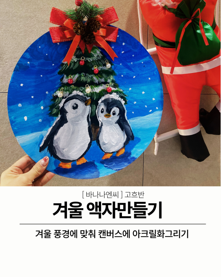 안녕하세요~ 군포 미술학원! 산본 미술학원! 군포 산본 학원가에 위치한 씨앤씨 미술학원의 초등미술 브랜드 바나나엔씨! 여기는 산본 바나나엔씨 초등 고학년반, 고흐반의 소라T입니다~ 어느덧 새해가 시작되고 1월의 중순을 지나고 있어요. 오늘은 지난 한 해를 따뜻하게 마무리했던 12월 수업 이야기를 나눠보려 합니다. 바나나엔씨 미술학원 고흐반에서는 크리스마스를 맞아, 아이들이 한 해 동안 배워온 것들을 차분히 정리해볼 수 있는 겨울 액자 만들기 수업을 진행했어요. 이번 수업은 30cm 원형 캔버스에 아크릴물감을 사용한 겨울 액자 작품으로, 단순히 계절 그림을 완성하는 데에 그치기보다 아이들이 그동안 수업을 통해 쌓아온 관....... <img src="https://blogthumb.pstatic.net/MjAyNjAxMTVfMTk4/MDAxNzY4NDYyNTQ3OTA1.QHw-fJdTvWHJWutMqYJUecEEjJ0hJSNAsYz9MdStHUkg.JNAaAN_9qLRLd3QFjJkmRoRP3cBJmrN8hN1l4bYo89sg.PNG/%B0%CB%C1%A4%BB%F6_%BD%C9%C7%C3%C7%D1_%C1%A6%C1%D6%B5%B5_%BF%A9%C7%E0_%C3%DF%C3%B5_%C0%CE%BD%BA%C5%B8%B1%D7%B7%A5_%B0%D4%BD%C3%B9%B0.png?type=s3" />