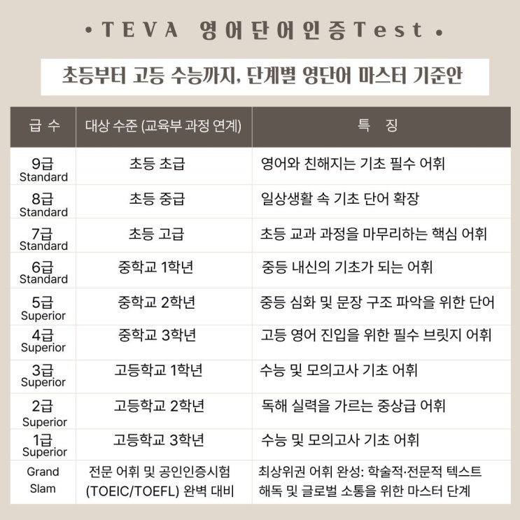[당동영어학원]내신 만점의 비결? 교육부 필수 영단어, 'TEVA 영어단어인증시험'급수증으로 증명하세요!