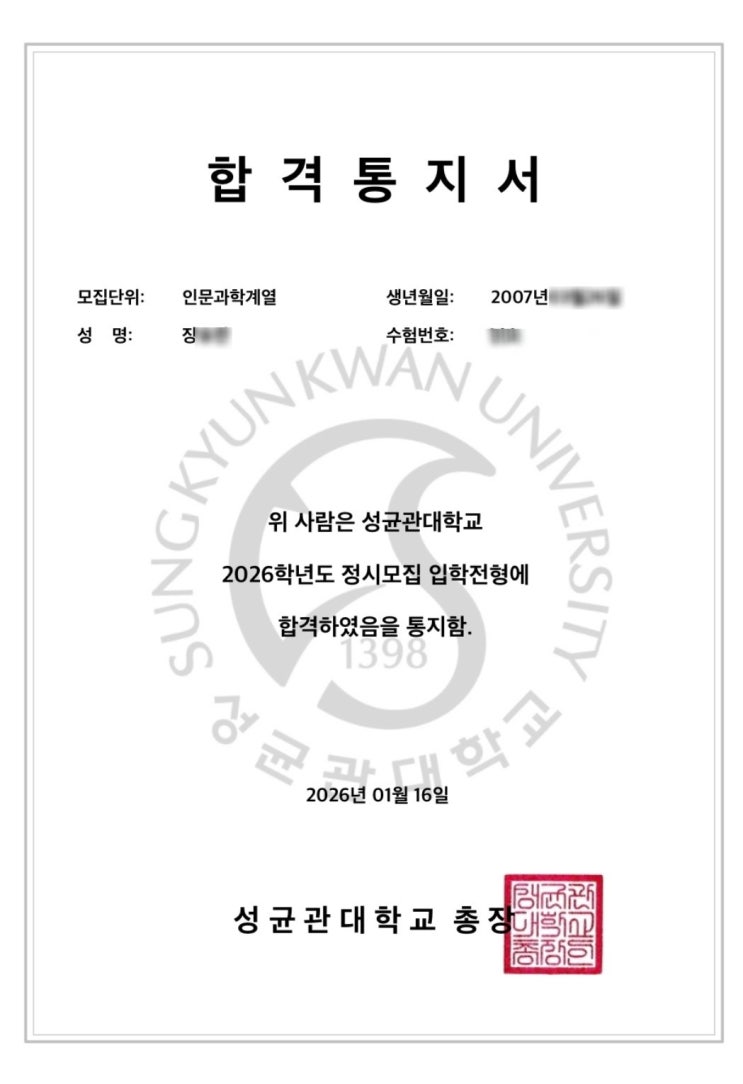 [합격 후기] 중앙대, 성균관대 합격 / 군포고 학생