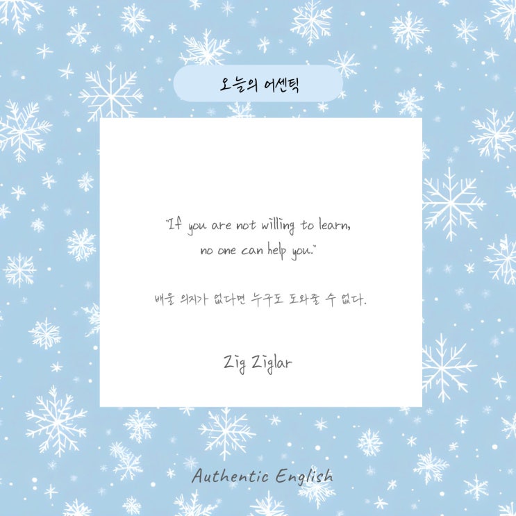 “If you are not willing to learn, no one can help you.” 배울 의지가 없다면 누구도 도와줄 수 없다. Zig Ziglar <img src="https://blogthumb.pstatic.net/MjAyNjAxMTdfMTgy/MDAxNzY4NjEyNTQ1MDUy.GKjoZznU6gXQkTWpDFv6wDxuUZAM_8dplPuS3t4fChgg.yf0JEcoWBpetYB0XXzo8O1bTmpU-MAPNNu5NVOOPzQEg.JPEG/0118.jpg?type=s3" />