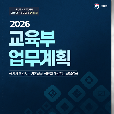 교육부에서 알립니다. 2026 교육부 업무계획 국민께 보고드립니다! 국민께 보고드립니다! 대한민국의 미래를 여는 길 2026 교육부 업무계획 국가가 책임지는 기본교육, 국민이 체감하는 교육강국 교육부는 이렇게 해 나가겠습니다! 1. 교육을 둘러싼 환경 변화에 적극 대응하겠습니다 2. 국가가 책임지고 기본이 튼튼한 교육을 실현하겠습니다 3. 헌법가치를 실현하는 교육, 세계와 함께하는 교육을 추진하겠습니다 학생, 교원이 AI를 보편적으로 활용하는 교육을 실현합니다 ➡️ AI 교육자료 지원확대 ➡️ 'K교육 AI' 개발 ➡️ 질문중심 수업, 서ㆍ논술형 평가 확대 ➡️ AI 중점학교* 확대 * AI 관련 교과 시수를 일반학교에 비해....... <img src="https://blogthumb.pstatic.net/MjAyNTEyMTNfMjg4/MDAxNzY1NTg3Njg0NDI4.kO4Kz7B8exA-0GUU4UnwG1gf80sBQsHwOeRY3d3dVs0g.9ZLnW9PtmcOCIud1Nv72LxkzP4b5UO509zinct0_lwQg.PNG/1.png?type=s3" />
