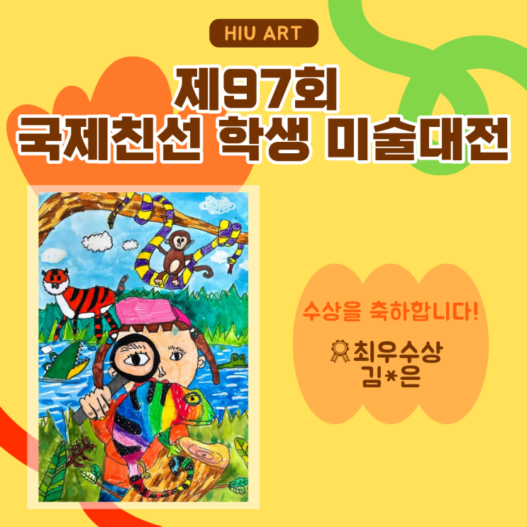 안녕하세요. 아이들의 상상력과 감성을 키우는 #하이유미술학원 입니다. 오늘은 정말 기쁘고 자랑스러운 소식을 전해드리려고 합니다. 제97회 국제 친선 학생 미술대회에 참가하여 각자의 개성과 이야기가 담긴 작품으로 수상의 영예를 안았습니다. 대회를 준비하는 과정에서 아이들은 “이렇게 그려도 될까요?” “제 그림에는 이런 이야기가 있어요!” 하며 자신의 생각을 그림으로 표현하는 즐거움을 마음껏 느꼈습니다. 정답이 정해져 있지 않은 미술 속에서 아이들은 색을 고르고, 선을 그리고, 스스로 선택하며 한 작품을 완성해 나갔습니다. 작은 손으로 그려낸 그림 한 장 한 장에는 아이들만의 순수한 상상력과 따뜻한 마음이 고스란히....... <img src="https://blogthumb.pstatic.net/MjAyNTEyMTVfMTA0/MDAxNzY1NzgxODgyNTA1.PeN15j_xCsqCoP-HBPZhamb8552oXlv0aoaefleufB8g.A5Tc5TSuz8DIi6Hd7ut7MPx6jVOeq9s00KP2YTIqc3Ig.PNG/KakaoTalk_20251215_154354338.png?type=s3" />