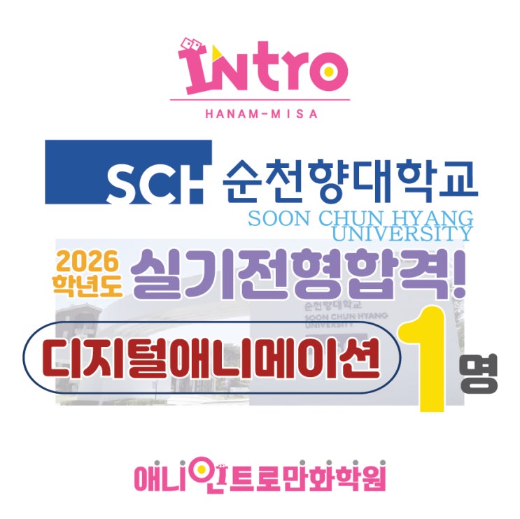 [덕풍동애니만화학원] [고덕동애니만화학원] 2026학년도 순천향대학교 디지털애니메이션학과 합격!