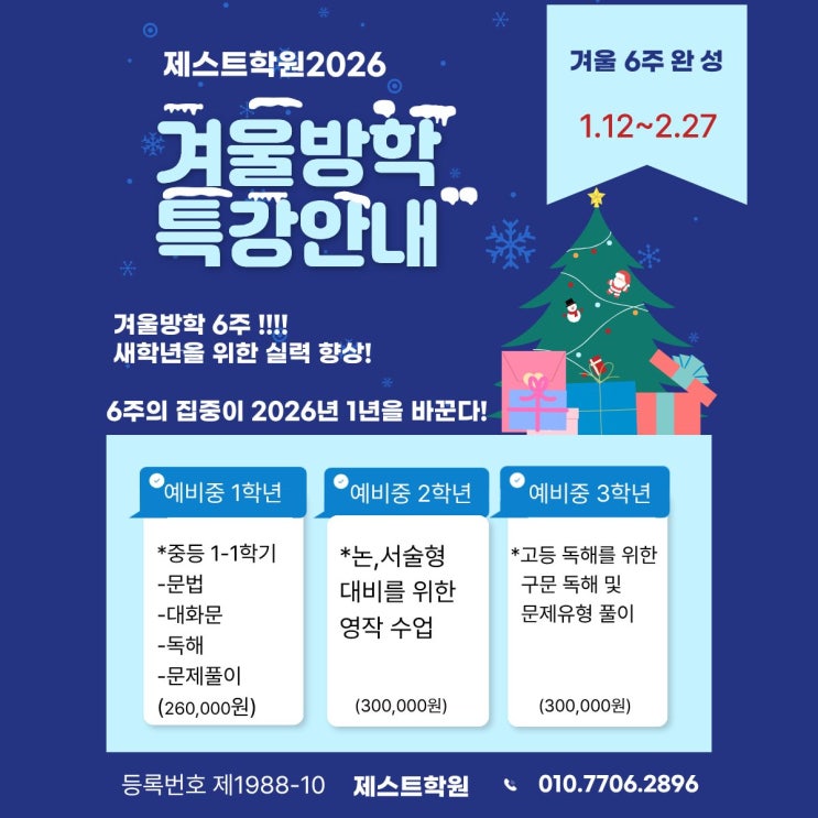중학생 겨울방학 영어 특강으로 2026년 성적이 달라집니다ㅣ제스트 학원