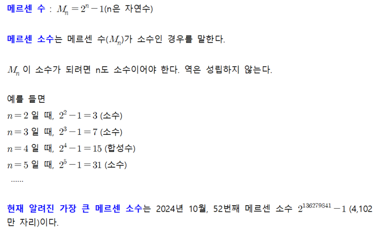 소수(素數) : 1보다 큰 자연수 중에서 약수가 1과 자기 자신뿐인 수 예) 2, 3, 5, 7, 11, … 소수(小數) : 0보다 크고 1보다 작은 수 B.C.300년경에 유클리드(Euclid, B.C. 325?~B.C. 265?)가 소수는 무한히 많음을 논리적으로 설명하였다. B.C. 240년경에 에라토스테네스(Eratosthenes, B.C. 275~B.C. 194?)가 소수를 찾는 방법 ‘에라토스테네스의 체’를 고안하였다. 1644년에 메르센(Mersenne, M., 1588~1648)이 2의 거듭제곱에서 1을 빼서 소수가 되는 특별한 형태의 수를 발표하였다. 이러한 수를 ‘메르센 소수’라고 한다. 1742년에 골드바흐(Goldbach, Chritian, 1690~1764)와 오일러(Euler, L., 1707~1783)은 “2보다 큰 짝수는 두 소....... <img src="https://blogthumb.pstatic.net/MjAyNjA0MDJfMTk1/MDAxNzc1MDY0ODQ2MzU4.dxhLGTehpeOLKkRQZiM7_uPiL9MgiAncvme1pU9wWzkg.QrbKzKFC0yEI6RU3hR3iJCUlKImULSnbxzh67YBuhg0g.PNG/3-0.png?type=s3" />