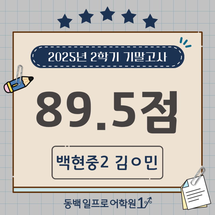 [25년 2학기 기말고사 결과] 백현중2 김ㅇ민 89.5점