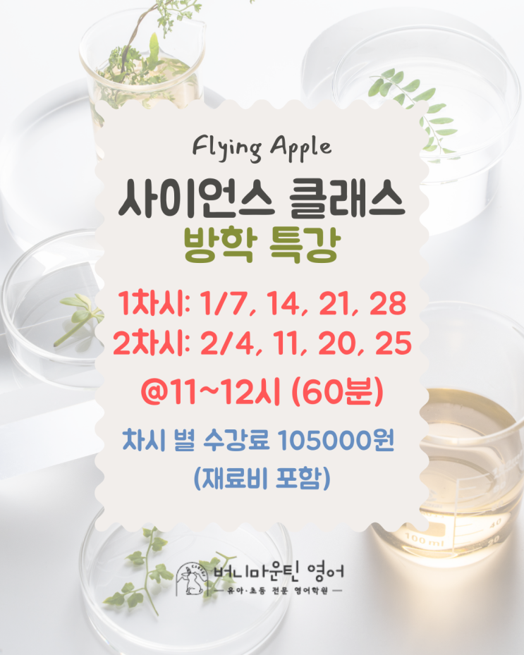 안녕하세요. 신봉동 영어학원 더배움에서 초중고 겨울 방학특강 안내를 드리려고 해요. 연령대에 맞는 특강 수업으로 영어에 흠뻑 빠지는 겨울 방학이 될 수 있게 세팅해 보았습니다^^ 2월 셋째 주는 설 연휴로 특강 수업이 한 주 휴강입니다. 초등 방학 특강 수업 먼저 초등 영어 방학 특강을 안내드립니다. 초등 저학년 화목 방학 특강 1월13일(화)-2월26일(목) 총12회 ◆초등 저학년 화 스토리북/ 목 Cooking Class 오전 10시-11시/오후 12시-1시 두 타임이 같은 수업입니다. 두 타임 중 선택 가능하세요. 선생님과 즐겁게 스토리북을 읽고, 요리하며 영어 표현도 익히며 즐겁게 배우는 영어 학습입니다^^ ◆초등 저학년 화 스토리북/ 목 Art ....... <img src="https://blogthumb.pstatic.net/MjAyNTEyMTNfMjY0/MDAxNzY1NTk3MTM0NzA0.48eBz4V-hPsr7KW4Q8hLR94RLgKRT9XzeduZuVH1LWAg.Zy6PFA-nmn-d6DB_PDx2alfYILyuYa5W68YWOCXfUgAg.PNG/1.png?type=s3" />