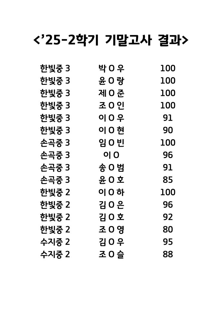 2025년 2학기 기말고사 한빛중/손곡중/수지중 결과보고!