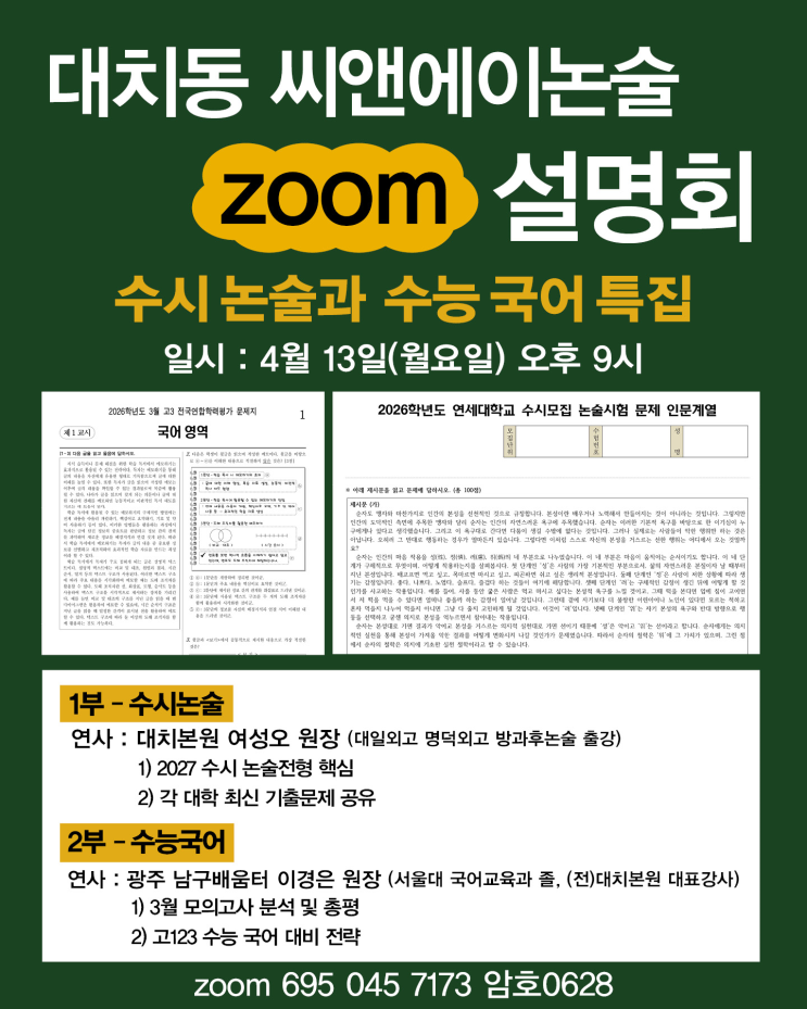 [대치동 C&A논술 Z00M 설명회] - 수시 논술과 수능 국어 특집