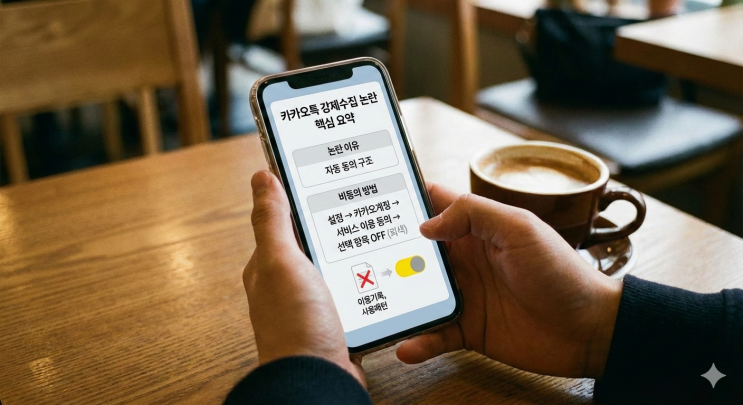 2026년 카카오톡 강제수집 논란의 핵심 원인과 개인정보 유출을 막는 비동의 설정 방법을 정리했습니다. 자동 동의 구조에서 내 데이터를 지키는 필수 가이드를 확인하세요. 카카오톡 강제수집 논란의 실체와 2026년 현재 상황 카카오톡 강제수집 논란은 카카오가 통합 서비스 약관을 개정하며 도입한 '자동 동의 구조'에서 비롯되었습니다. 사용자가 명시적으로 거부 의사를 밝히지 않으면 기한 내에 자동으로 수집에 동의한 것으로 간주하는 방식이 2026년 이용자들 사이에서 큰 반발을 불러일으켰습니다. 특히 이번 논란의 핵심은 단순한 개인정보를 넘어 이용 기록과 사용 패턴이라는 광범위한 행태 정보가 포함되었다는 점입니다....... <img src="https://blogthumb.pstatic.net/MjAyNjAyMTBfMTkz/MDAxNzcwNjkyNzEyNjIz.IvW-Fvd6F-T6_XqwGEqDytXCPTEmC443qen4iLFGGVIg.9pZG_t_lmDXt2CBSrGjnMqTmuS8Ydg_uGbptPpqNPK0g.PNG/%C4%AB%C4%AB%BF%C0%C5%E5_%B0%AD%C1%A6%BC%F6%C1%FD_%B3%ED%B6%F5%C0%C7_%BD%C7%C3%BC%BF%CD_2026%B3%E2_%C7%F6%C0%E7_%BB%F3%C8%B2Gemini_Generated_Image_eeo4eveeo4eveeo4.png?type=s3" />