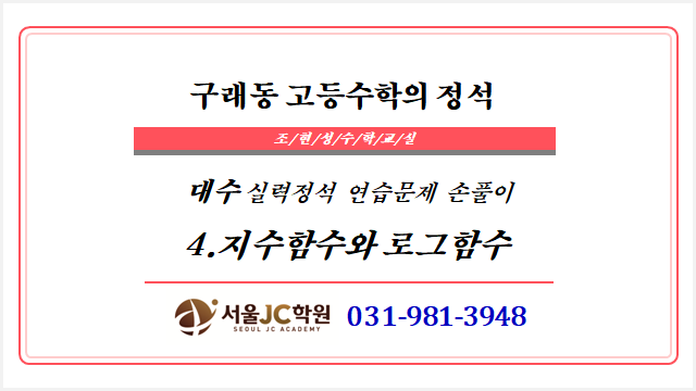 [구래동 프리미엄 고등전문학원_서울JC]_대수_실력정석 연습문제 손풀이_4.지수함수와 로그함수 #김포구래동수학학원 #고등수학전문학원 #서울대원장직강 #원장직강 #김포고등수학 #구래동수학학원 #대치동수준수업 #수학성적향상 #김포수학과외대체 #솔터고 #양곡고 #호수고 #김포고 #장기고 #운유고 #통진고 <img src="https://blogthumb.pstatic.net/MjAyNTEyMDdfMjA2/MDAxNzY1MTAyNjg4NDA1.AsNF-5mvC6lD85uDDezsi1wWHrkym1zSjdGnPw5k5XMg.2zZ3Ucv3L0JN3jpDipvdu5YIj329HYo3JZWWEIdKPAcg.PNG/image.png?type=s3" />