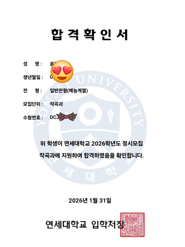 2026정시] 연세대 작곡과 합격!!