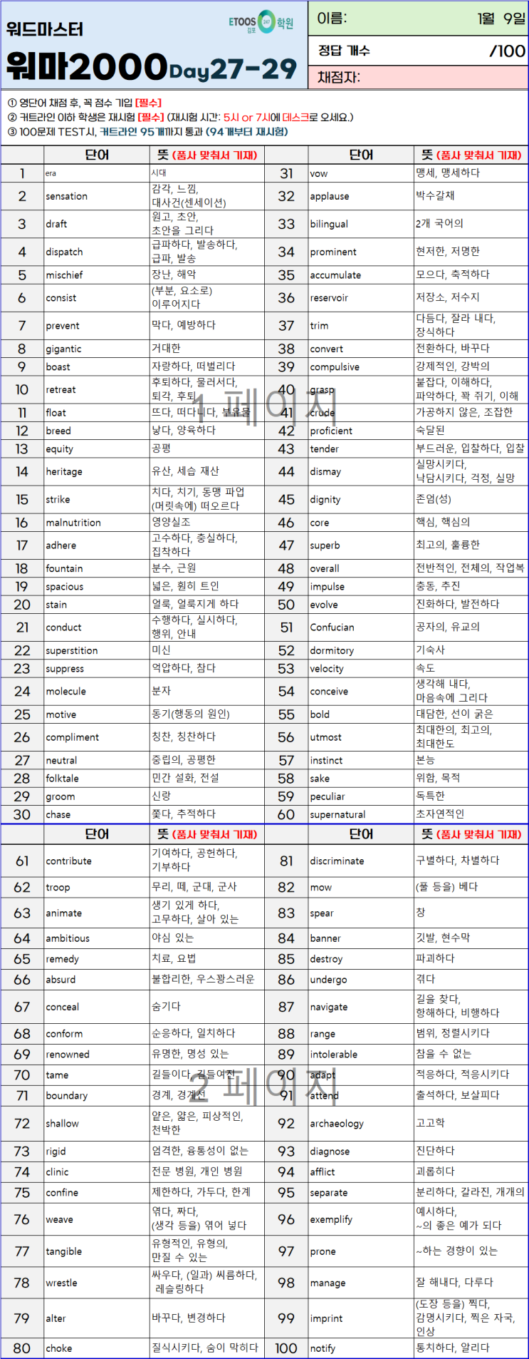 [일일 영단어 테스트] 2026.02.04