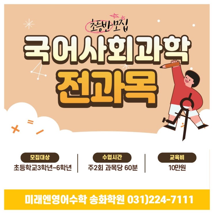 [미래엔영어수학 송화]초등부 전과목반 개설(국어,사회,과학)-송화초,벌말초,구봉초