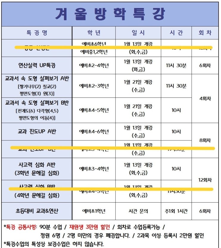 지워진 반은 모집이 마감되었고 다른반들은 1~2명씩만 접수 받고 마감합니다! 자세한 문의는 학원으로 전화 주시거나 카톡채널로 문의해 주시면 답변드리겠습니다! <img src="https://blogthumb.pstatic.net/MjAyNTEyMjJfNTYg/MDAxNzY2NDEyMzU1MjE5.MiuDy7gG7nXK_PDQkBkFXjFH8Pewyqc6x-3TQRa06gEg.xfCojwMF5z3kZM3qf-NvwnJkh56UCX7HypOvrYrME1Ag.JPEG/%B0%DC%BF%EF%B9%E6%C7%D0%BA%ED%B7%CE%B1%D7111.jpg?type=s3" />