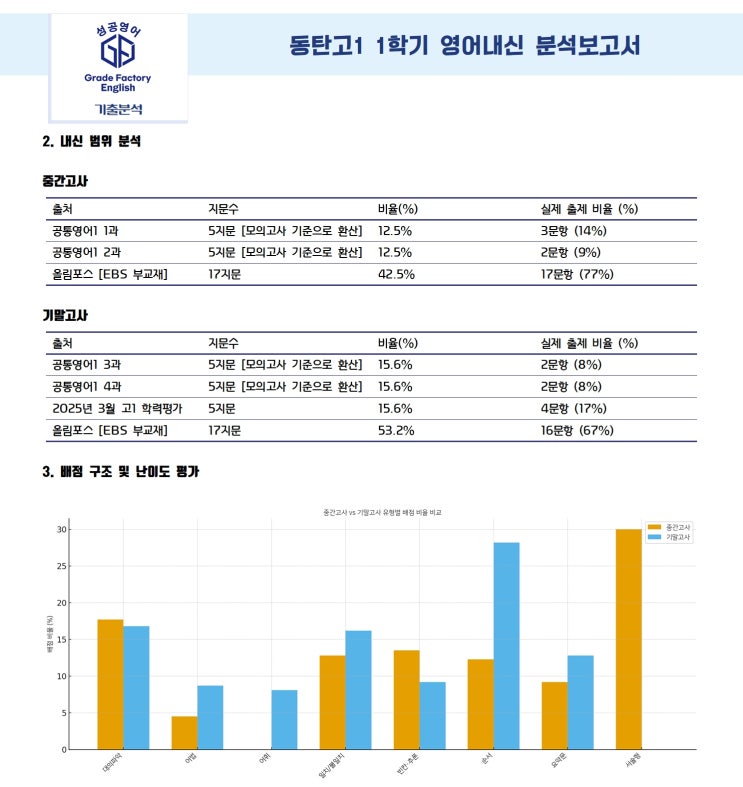 [동탄고 예비고1] 교과서만 외우면 망합니다. 동탄고 영어 1학기 분석보고서 (서술형/부교재 비중 공개)