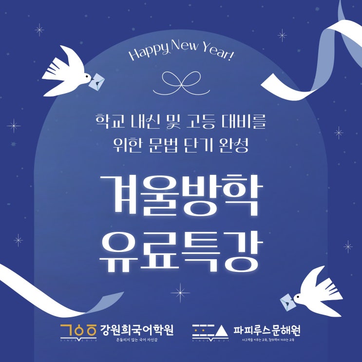 안녕하세요, 동탄 NO.1 "17년간의 신뢰, 약속된 미래" 최고의 수업 + 따뜻한관리❤️ 흔들리지 않는 국어자신감, 수능국어·내신국어의 절대 강자 강원희국어학원X파피루스문해원입니다. 2026년 겨울방학, 강원희국어학원에서 우리 학생들의 국어 실력을 확실하게 끌어올릴 겨울방학 특강을 준비했습니다! 겨울방학 유료 특강 안내 학교 내신 및 고등 대비를 위한 문법 단기 완성!! 겨울방학 동안 국어 문법을 체계적으로 정리하고 중등 내신부터 고등 과정까지 탄탄하게 대비할 수 있는 겨울방학 유료 특강이 진행됩니다. 이번 특강은 예비중1·예비중2·예비중3 학생들을 대상으로 학년별 필수 문법 내용을 핵심 위주로 정리하....... <img src="https://blogthumb.pstatic.net/MjAyNTEyMjZfMjI1/MDAxNzY2NzEwNjQ1NzM4.5WduQyybA0dYJBIG9_EFHkja4hEfhOdJNIMguK-CJmQg.lC8ARQZRBJmI3rlghBtJ3yGComipHYH0zzHG-GhQHX4g.JPEG/1.jpg?type=s3" />