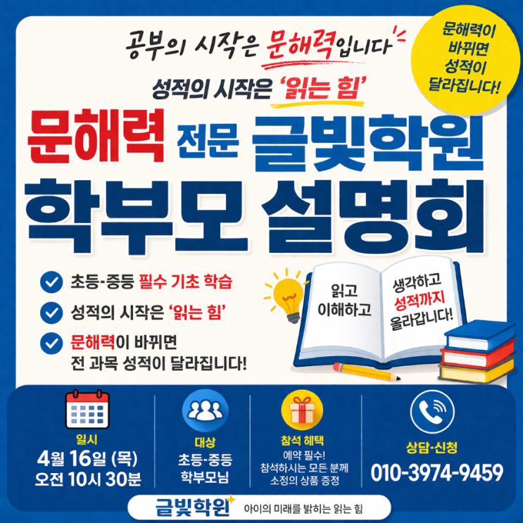 공부의 시작은 ‘문해력’입니다 글빛학원 학부모 설명회 초대