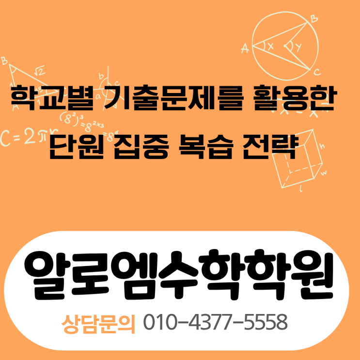 안녕하세요, 효자동내신대비 알로엠수학학원입니다. 오늘은 내신 성적 향상을 위한 효율적인 복습 전략 중 하나인 학교별 기출문제를 활용한 단원 집중 복습 방법에 대해 알아보려고 합니다. 기출문제는 단순한 문제 풀이를 넘어 실제 시험의 출제 경향과 문제 유형을 정확히 파악하는 데 중요한 자료입니다. 특히 내신 시험의 경우 학교마다 출판사와 문제 스타일이 다르기 때문에 학교별 맞춤 전략이 필요합니다. 학교별 기출문제는 해당 학교의 시험 스타일을 반영하고 있어 단원별로 자주 출제되는 개념과 문제 유형을 파악하는 데 유리합니다. 같은 단원을 배워도 어떤 학교는 서술형 위주로, 또 다른 학교는 객관식 중심으로 출제할 수 있....... <img src="https://blogthumb.pstatic.net/MjAyNTEyMTlfMTQ2/MDAxNzY2MTA0MjYzMzc1.tvqc7d1ksS89At65k1fFTKTTZmU_J0Pv5XK3kvI0fhMg.qQ_dwVoTVjRMczif0akMg6HYeN-mp8sjeZKZYZT80ycg.PNG/34-%BE%CB%B7%CE%BF%A5.png?type=s3" />