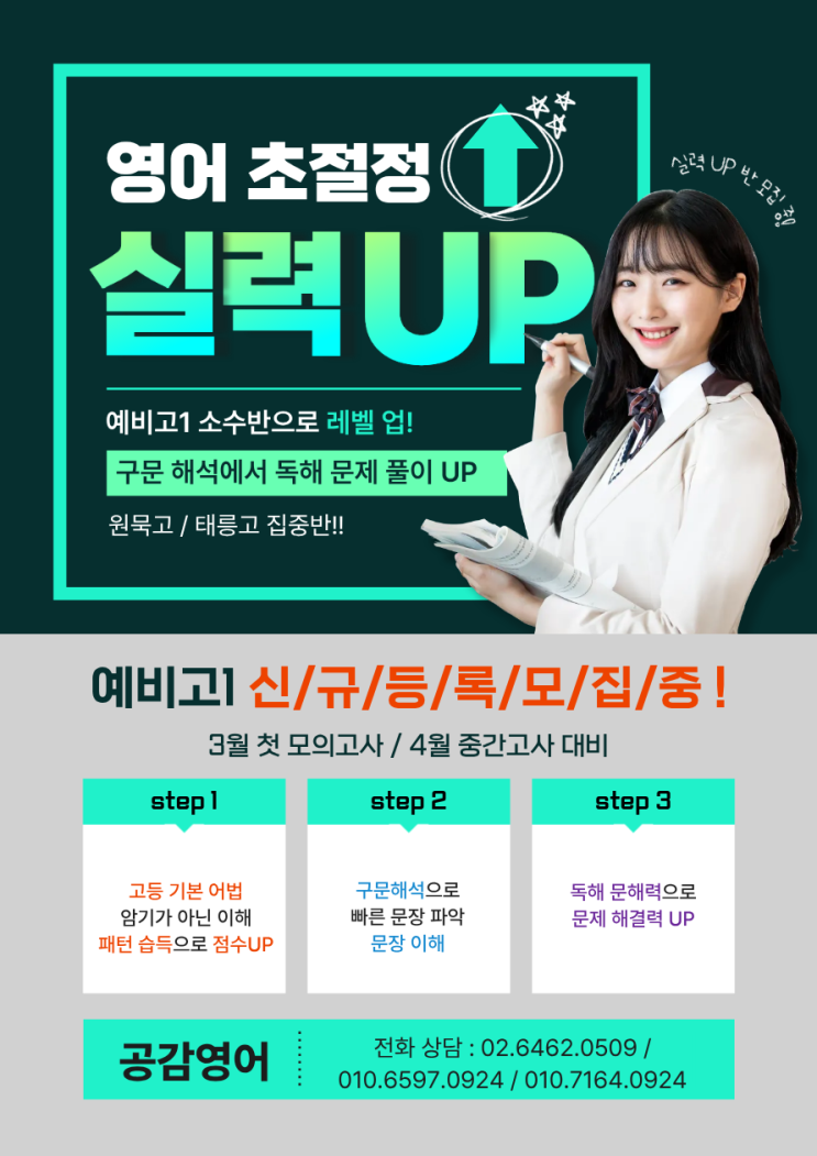 내신과 수능 영어를 위해 필요한것 벌써 1월하고도 2주차가 끝나가고 있습니다. 금방 겨울 방학이 끝나고 입학식이 끝나면 3월 첫 모의고사 그리고 바로 중간고사가 있습니다. 이를 위해 지금이라도 소수 정예로 원묵고와 태릉고만 집중하는 공감 영어가 답입니다. 내신과 수능 영어를 위한 필수 당연히 어휘입니다. 그래서 공감학원은 우선 지금까지의 학습량에 따라 1월 2월 단위로 나누어 목표를 정합니다. 올해 원묵고의 경우 지난해까지의 교재의 개정판이 나오기에 2025년 개정판으로 방학을 준비합니다. 다만, 중학교때 충분한 휴식으로 어휘량이 부족하다면 그것도 단계별로 목표를 정하여 준비합니다. 난이도에 맞지 않는 어휘가 영어 포....... <img src="https://blogthumb.pstatic.net/MjAyNjAxMDdfMjY1/MDAxNzY3Nzg3MzE0OTYw.4elNF9HQco7BdXYdMCkdr5_vc_k4TisGQwoohRpoHIEg.Ht6WEUNJGnIO8LR794MmUO7pki1oCKWDch0LZDfbOwUg.PNG/%C1%A6%B8%F1%C0%BB_%C0%D4%B7%C2%C7%D8%C1%D6%BC%BC%BF%E4..png?type=s3" />