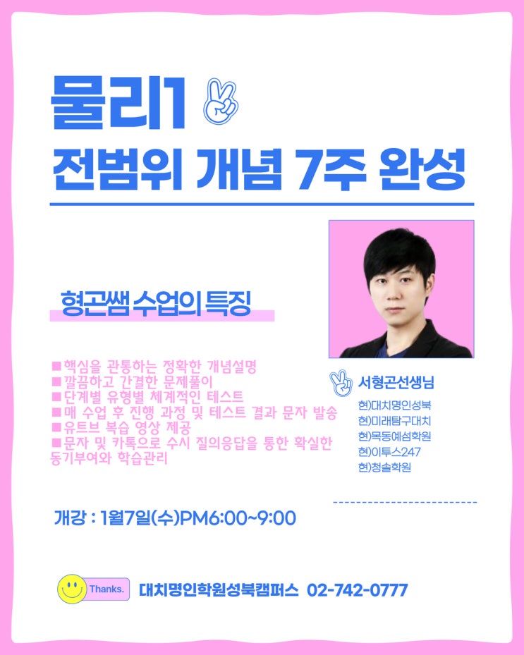 <물리학 겨울방학특강> 핵심을 관통하는 정확한 개념설명 깔끔하고 간결한 문제풀이 단계별 유형별 체계적인 테스트 매 수업 후 진행 과정 및 테스트 결과 문자 발송 유튜브 복습 영상 제공 문자 및 카톡으로 수시 질의응답을 통한 확실한 동기부여와 학습관리 예비고2 물리학 전범위 개념 7주 완성 ☎ 수강 예약/문의 ☎ ▶ 02-742-0777 [성북] ▶ 010-3664-0773 (문자) ※ 문자 예약시 학교, 학년, 이름 필수 ◆ 고2시간표 바로가기 ◆ https://link24.kr/4FthO5r ♥ 대치명인학원 성북캠퍼스 오시는 길 ♥ <img src="https://blogthumb.pstatic.net/MjAyNTEyMTdfODAg/MDAxNzY1OTcyNjMwMDA5.2NkGFS812NR9jSfnRahBZcXe7LkrGyG0nqKsnMPRaUgg.duwcetB0C_XMSJQEn9W7lZ0i9Hmj6BO0fMCPUL0-dCsg.JPEG/KakaoTalk_20251217_185015657.jpg?type=s3" />