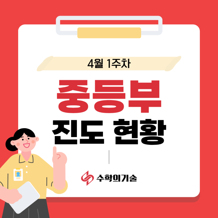 중계동 수학학원 수학의기술|4월 1주차 중등부 진도 현황 공개!