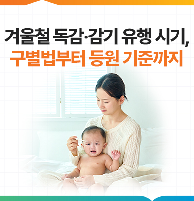 요즘 독감과 감기가 유행하고 있죠. 특히 어린이집과 학교처럼 아이들이 함께 지내는 공간에서 확산 속도가 빨라지면서 부모들의 걱정도 커지고 있습니다. 우리 아이의 건강을 지키기 위해 독감과 감기의 차이, 아이에게 나타나는 주요 증상, 어린이집 등원 기준을 함께 살펴보겠습니다. 감기는 리노·아데노·코로나바이러스 등 다양한 바이러스에 의해 발생하며, 콧물·코막힘·인후통이 서서히 시작되는 것이 특징입니다. 대부분 미열 또는 열이 없고 7~10일 이내 자연 회복되는 경우가 많습니다. 반면 독감(인플루엔자) 은 A·B형 인플루엔자 바이러스가 원인으로, 1~4일 잠복기를 거쳐 38도 이상 고열, 근육통·두통·오한이 갑자기 나타납니다. 소....... <img src="https://blogthumb.pstatic.net/MjAyNTEyMTVfMjYy/MDAxNzY1NzgxMjY0NTgx.GwpsAxhSDlCvFQ4FiCnEVWnf5SG2TYCqlbd9MshTSEsg.xr_8b7noU2-x2rijiFK88grRcQDWn8vmLDz1LA4GOFQg.JPEG/0.jpg?type=s3" />