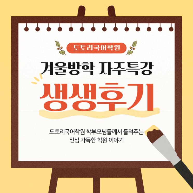 안녕하세요, 도토리 국어학원입니다! ️ 추운 겨울이지만, 도토리 국어학원의 열기는 그 어느 때보다 뜨겁습니다. 바로 아이들의 국어 실력뿐만 아니라 '공부하는 습관'까지 바꿔놓고 있는 겨울방학 자주특강 때문인데요! 오늘은 도토리만의 특별한 관리 시스템과 함께, 학부모님들께서 직접 전해주신 생생한 후기까지 소개해 드리려고 합니다. 계획 준수율 100%! 도토리의 '자주특강' 비결 도토리 국어학원의 '자주특강(자기주도 완성 특강)'은 무엇이 다를까요? 나만의 학습 플랜: 선생님이 일방적으로 정해주는 숙제가 아닙니다. 스스로 본인의 학습 가능 분량에 맞춰 계획을 세웁니다. 매일매일 체크....... <img src="https://blogthumb.pstatic.net/MjAyNjAyMDVfMTA2/MDAxNzcwMjgxNDE1NTAx.VDIc0PxgdXQwYnoaPfS5ET3Uj6OQnyj46WhaJqXssdwg.0ADB2CKsQ7C_Hocc6an_fYKC4s7DI6ozy2RUwa-C6Ygg.PNG/%C1%A6%B8%F1%C0%BB-%C0%D4%B7%C2%C7%D8%C1%D6%BC%BC%BF%E4_-001.png?type=s3" />