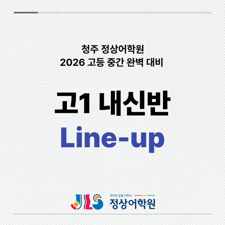 2026 고등 중간 완벽 대비 청주 정상어학원 고1 내신반 Line-up 공개합니다. 3월 2일 개강합니다! CHECK POINT! ✅️ 1️⃣ 최강 자료 R&D → 학군지 스타일 커리큘럼 → 쉬운 문제부터 상위권 변별 문항까지 완벽 탑재 2️⃣ 기출 동형 FINAL 모의고사 → 실제 학교 내신과 가장 가까운 구성 → 시험 직전, 점수로 연결되는 훈련 3️⃣ 고등 내신 전문 티칭 꼼꼼하고, 전문적이고, 스마트한 고등 티칭 선생님과 함께합니다 ! 꾸준히 상담 문의가 이어지고 있습니다. 2월 정규반부터 함께 합류하시길 권유드립니다. 영어 실력과 관리는 학원에서 Full Care 하고 있습니다. 우리 아이가 고1 내신에서 헤매지 않고 smartly 대비할 수 있도록 지....... <img src="https://blogthumb.pstatic.net/MjAyNjAyMDFfMTc2/MDAxNzY5OTI0MTUxNzcx.wwz1nfHQV9kY_e_bn7MOUVUfI30F2QvnXB2YAp5fsHwg.wl8zSZ1OSP7V1tfNlAXEVb3_ISrQ-MJ3egzcSXeUNJIg.PNG/1.png?type=s3" />