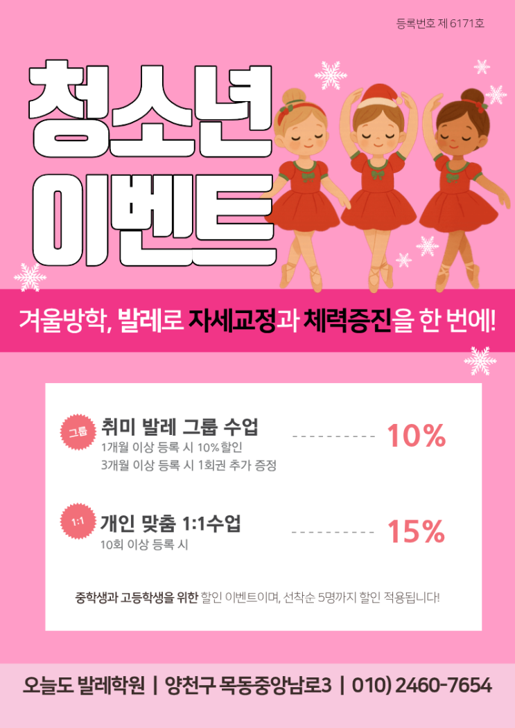 안녕하세요! 오늘도 발레학원입니다. 어느덧 날씨가 쌀쌀해지고 겨울방학이 다가오고 있습니다. 학기 중 책상 앞에 오래 앉아 공부하느라 어깨는 굽고, 목은 앞으로 나오고, 체력은 떨어지지 않았나요? 이번 겨울방학, 우리 아이들의 무너진 자세를 바로잡고 기초 체력을 탄탄하게 키워줄 특별한 이벤트를 준비했습니다! "겨울방학, 발레로 자세 교정과 체력 증진을 한 번에!" 성장기 청소년에게 발레는 단순히 춤을 배우는 것을 넘어, 척추를 바르게 세우고 속근육을 단련해 바른 자세와 숨은 키를 찾아주는 최고의 운동입니다. 공부하느라 지친 몸과 마음을 발레로 힐링하고 건강하게 가꿔보세요! 이벤트 상세 혜택 1. 취....... <img src="https://blogthumb.pstatic.net/MjAyNTEyMTJfMjQ3/MDAxNzY1NTEyMzA5MDM5.Vg2uKsPjXm0hypFZURtZoLVOlDAvcnUPeub9NmkQxRwg.YGvMsHTwzWiGCYnhd8rQSZMrp9Lhhzm62tM1xvfPy6cg.PNG/2.png?type=s3" />