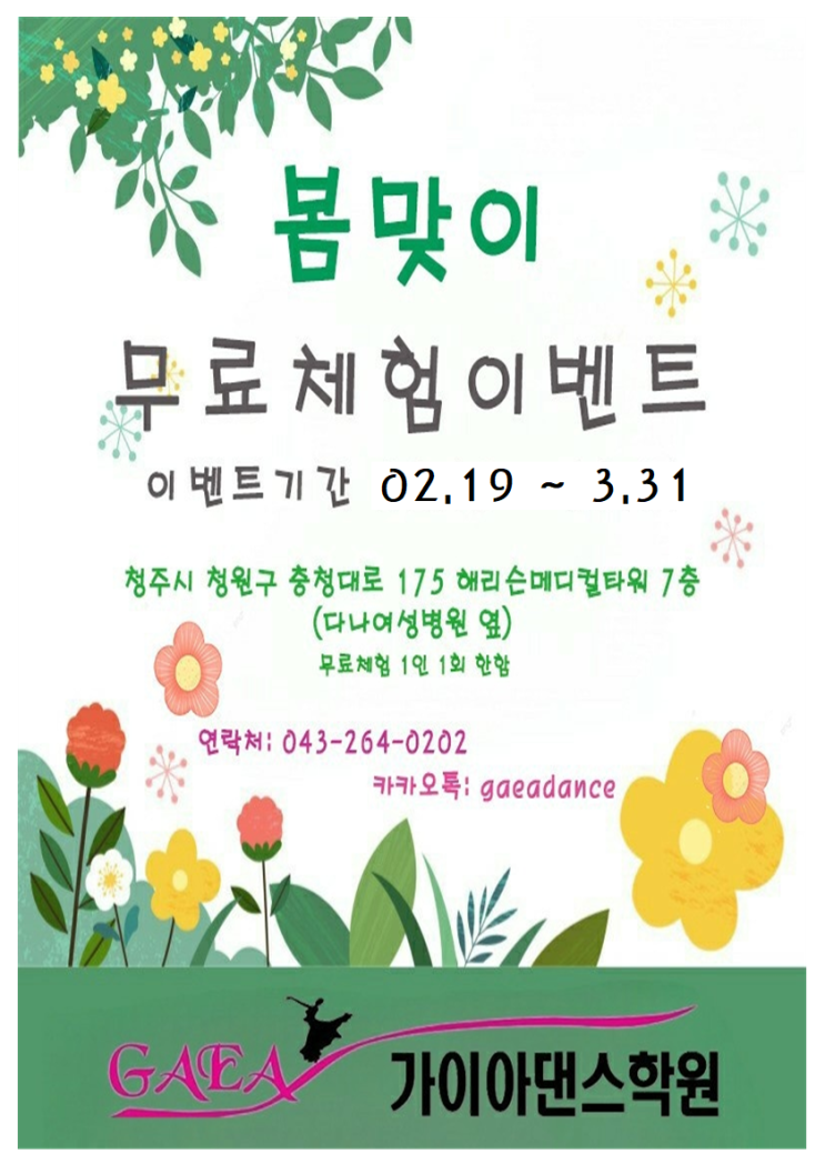 청주댄스학원/가이아댄스학원 - 봄맞이 무료체험이벤트