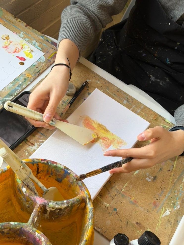이태원에서 감성 채우는 법! <백드롭페인팅하기> 요즘 이상하게 머리가 복잡할 때 있지 않나요? 뭔가 새로운 걸 하고 싶은데, 막상 뭘 해야 할지 모르겠는 그런 날. 결론부터 말하면 “생각보다 훨씬 재밌고, 완전 힐링이에요.” 처음엔 그림을 잘 못 그리니까 걱정했는데 여기는 진짜 초보 기준으로 진행되는 수업이라서 그냥 색을 올리고, 바르고, 쌓는 과정 자체가 너무 편안했어요. 오히려 “잘 그려야 한다”는 부담이 없어서 더 몰입하게 되는 느낌? 그래서 그런지 요즘 이태원 놀거리나 이태원 데이트 코스로 많이 찾는 이유를 알겠더라구요. ✔️ 이런 분들한테 특히 추천해요 • 이태원에서 색다른 경험 해보고 싶은 분 • 실....... <img src="https://blogthumb.pstatic.net/MjAyNjAzMjZfMTEx/MDAxNzc0NTA1MDk2NDMx.D1ZJmzseI3G1Ac5BYO1Cv8RZchS54JD3QAccRGnHjfMg.FKK9ZMZI7L_Kiz809QJqaXnM6EahBmo6m05dgv1Plesg.JPEG/IMG%A3%DF0931.jpg?type=s3" />