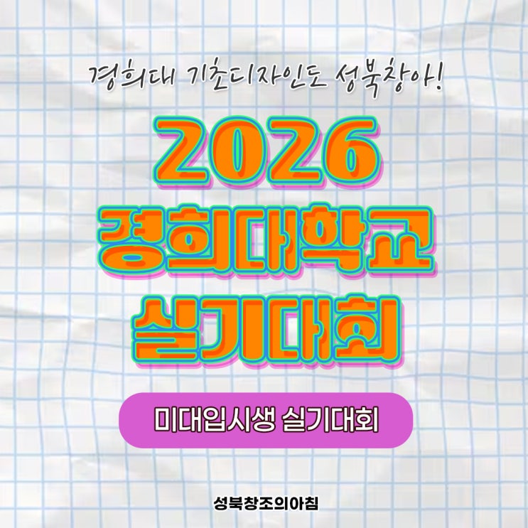 2026학년도 경희대 실기대회 소식을 전해드리려고 합니다. 고등학생들을 위주로 진행하는 실기대회로 매년 진행하는 실기대회입니다. 경희대는 많은 입시생들이 지원하는 실기대회인데요. 입시미술을 하고 있는 학생들은 꼭 참여해 보시는 것이 좋아요. 경희대 디자인과 미대는 국제캠에 위치해있습니다. 국재켐은 용인에 위치해있고 해당 실기대회는 현장 실기대회로 진행하니 참고해 주세요. 전국 고등학교 재학생 및 졸업생은 참가 가능하고 검정고시 취득예정이거나 취득한 자도 지원 가능합니다. 대회는 2026년 5월 2일 토요일에서부터 5월 3일 일요일 오전, 오후로 각 2회 총 4회 시험을 보게 됩니다. 오전은 9시부터 12시까지 오후는 15시....... <img src="https://blogthumb.pstatic.net/MjAyNjAzMjdfMjUz/MDAxNzc0NTk0MDcwOTgw.mUA0b1aBvRFFfm3z-XQ9Nhsde8a81kyLY74ua3QZ-pUg.Jij9nD3s7EZIVtqCKRFWHXTxEH1W8PU9MNGt33AEBVYg.JPEG/2026_%B0%E6%C8%F1%B4%EB_%BD%C7%B1%E2%B4%EB%C8%B8_%283%29.jpg?type=s3" />