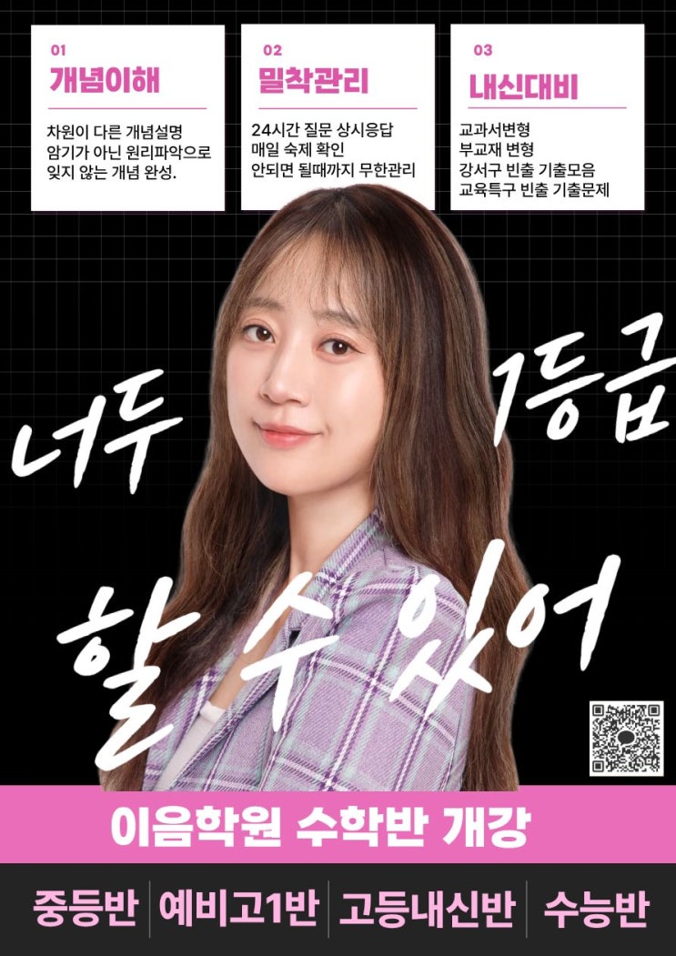 수학은 어렵다? 단순 암기와 단순 반복만을 하기 때문에 수학이 어렵게 느껴집니다. 하지만, 안미선 선생님과 함께라면 수학이 더 이상 어렵지 않습니다!! 안미선 선생님은 중고등 내신 수학을 지도하신지 어느덧 10년 이상 되셨는데요!! 수업이 끝이 아닌 지속적인 학부모/학생 상담으로 꾸준한 관리를 해주십니다. 단순 암기식 수업이 아닌, 이해를 도와주는 수업으로 모르면 알 때까지 반복해서 설명해 주십니다. ✔️왜 안미선 선생님인가? ① 차근차근 중등 수학과 함께 하는 고등 수학 → 중등 수학은 고등 수학의 기본이 될 만큼 매우 중요합니다! 중등 수학의 기본적인 내용들을 까먹지 않도록 틈틈이 반복하여 가르쳐 줍니다. ② 반복된....... <img src="https://blogthumb.pstatic.net/MjAyNTEyMjRfMTIy/MDAxNzY2NTcxMjYyNTg2.0iXqvANY-fVjucYl7xV6S5MpFyPnuJRPrK2Q-oUOdtgg.x27QdXkdPlLAG5nhzjadS_jCmT-In8CMCY2SM_IqJj4g.JPEG/KakaoTalk_20251224_190045517_02.jpg?type=s3" />