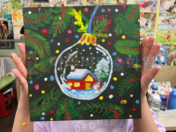 행복한 크리스마스 보내셨나요?^^ 들뜬 마음으로 기다렸던 성탄절이 지나고 맞는 일상입니다. 한 해가 마무리되어 가고 있는 시간인데요 우리 학생들 모두 건강하게 새해를 맞을 준비가 되었으면 좋겠네요. 오늘은 성탄절을 앞두고 초등반에서 수업했었던 아크릴화를 소개해 드립니다. 재료는 캔버스위에 아크릴이고요 크리스마스 분위기를 살려줄 스노우볼을 그려 보았습니다. 먼저 캔버스위에 아크릴 물감을 이용해서 전체적인 분위기를 고려한 밑색을 칠해 줍니다. 마르고 나면 그 위에 스케치를 합니다. 아크릴은 유화와 유사한 표현이 가능하면서도 유화물감에 비해 빨리 건조되는 특성을 갖고 있습니다. 아크릴물감의 큰 장점중 하나이죠. ....... <img src="https://blogthumb.pstatic.net/MjAyNTEyMjZfMTkw/MDAxNzY2NzI1ODAyNjI1.Ksx_AwbgHr3S6n8aFvSmNNEugo8xwOyaWwvPIhi8a4sg.NZ2cVZ8yPAPA0qLOgFMAChVcEgtKhWNw0yNe_uw3AWYg.JPEG/IMG_9645.jpg?type=s3" />