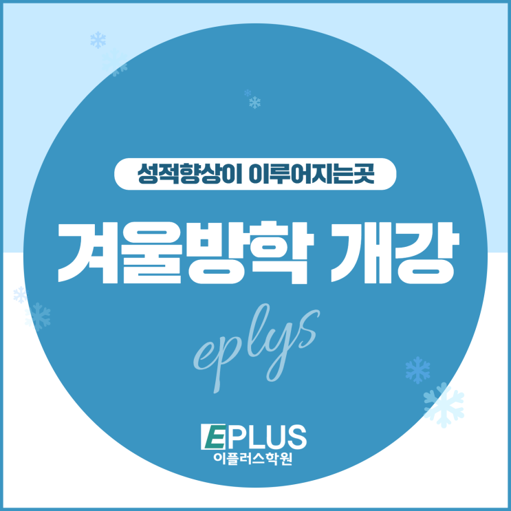 안녕하세요. 이플러스학원입니다. 이플러스학원은 26년 1월부터 시작되는 중등부·고등부 겨울방학 프로그램을 통해 학생들이 새 학년을 가장 안정적으로 출발할 수 있도록 과목별 학습 방향 설정과 학습 습관 정착, 성적 향상을 목표로 한 체계적인 관리 수업을 운영합니다. 또한 3월부터는 학교별 내신 대비 체제로 전환하여 1학기 중간고사를 목표로 한 본격적인 관리가 시작됩니다. ‘내신 성적 향상’이라는 결과로 증명해 온 이플러스학원답게, 모든 학생이 1학기부터 확실한 변화를 느낄 수 있도록 모든 선생님들이 끝까지 책임지고 지도합니다. ✔️ 이플러스 겨울방학 개강 일정 ✔️ 개강일 : 26년 1월 부터 개설과목 : 수학, 영어, 국....... <img src="https://blogthumb.pstatic.net/MjAyNTEyMjdfNzAg/MDAxNzY2Nzg4NDI1Njg2.wqHBUUuuWZVpUEUe7qV2L-qxlCnaD_o85JTHW8Gt1kQg.IaS4kHcVZXPP1zgjLuLiX6jgGVxGd8nUbieLnW_MZ-4g.PNG/%BA%ED%B7%CE%B1%D7_%BD%E6%B3%D7%C0%CF.png?type=s3" />