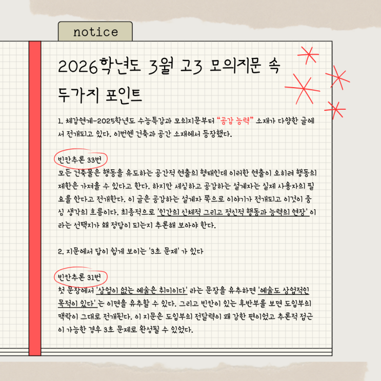 2026학년도 3월 고3 모의 지문 두 가지 포인트