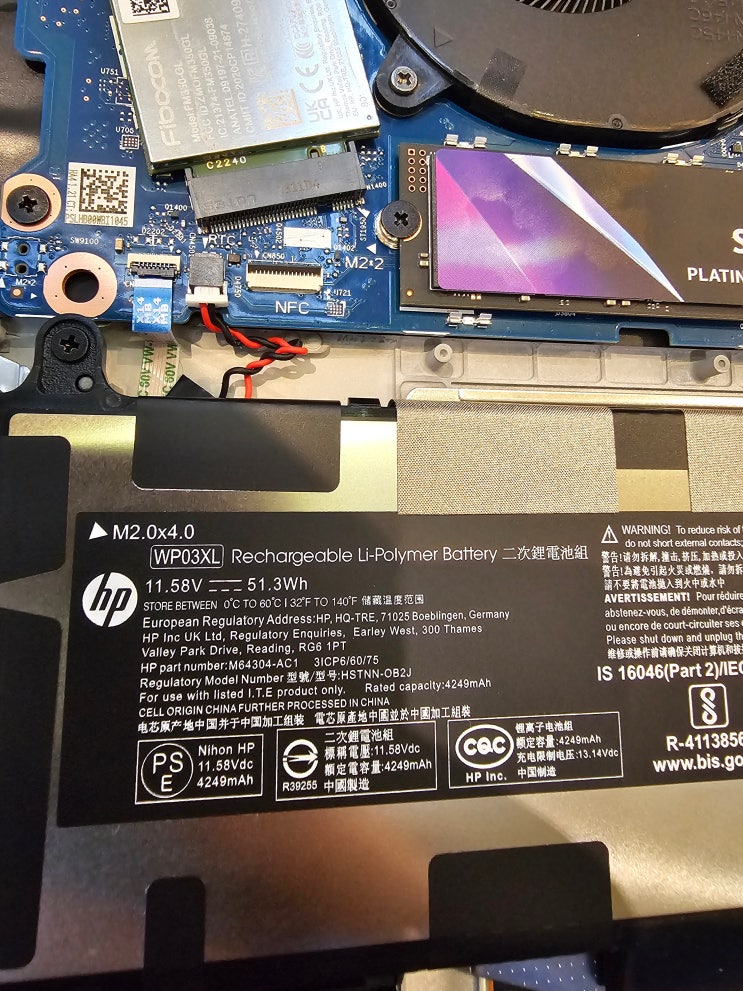 안녕하세용 오늘은 hp 엘리트북 배터리 이야기 입니다 저는 이번에 엘리트북으로 갈아탔는데요... 이게 hp 종특이긴 한데... 모든 부품들을 인터넷에서 쉽게 구할 수가 있습니다. 일단 제일 소모성 제품인 배터리를 봅니당 저게 정품 배터리 인데요.. 배터리는 시간이 지나면 점차 줄어드니.. 미리 하나를 주문해놓는 것도??? 왜냐하면... hp 제품들은 인터넷에서 호환 제품이 많아서 굉장히 싸게 구할 수 있습니다. 대략 배터리는 5만원 안팍에 구해집니다 아참 저 사진에 ssd 는 제가 따로 설치한 겁니다. 하이닉스 p41 2tb.... 가격이.... 요새 비싸죠... 저게.. 암튼 해외에서 주문한 게 드디어 도착했습니다. 옆에 모델명이 정확히 써 있네....... <img src="https://blogthumb.pstatic.net/MjAyNjAzMTFfMTk0/MDAxNzczMjAyODExOTIx.-h5vMEUFnM1haMK4dY-cyEFivTuPvz9nL1P8bVslb3og.c2pXV-75Yy1TAzGDNWpchEkdZo1MZ3AJqQbWJOb6K28g.JPEG/KakaoTalk_20260311_131706955_12.jpg?type=s3" />