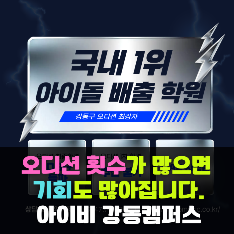 [강동구 오디션학원 추천] 하남 미사 / 구리까지, 오디션 기회 많은 곳 찾는다면? 강동구, 하남 미사, 구리에서 오디션학원을 찾고 계신가요? 많은 분들이 “어디가 잘 가르치나요?”를 먼저 보지만, 실제로 중요한 건 얼마나 많은 오디션 기회를 제공하는가입니다. ✔ 다양한 오디션 기회가 있는 학원 아이비뮤직아카데미 강동캠퍼스는 단순 수업 중심이 아닌, 연합오디션, 기획사 내방오디션, 공연형 오디션, 추천오디션, 비공개오디션까지 다양한 루트를 통해 학생들에게 실질적인 기회를 제공합니다. 단순한 경험이 아닌 합격으로 이어질 수 있는 구조를 만들어내는 것이 핵심입니다. ✔ 오디션을 위한 실전형 수업 수업 또한 오디션에 맞춰....... <img src="https://blogthumb.pstatic.net/MjAyNjA0MDNfNDAg/MDAxNzc1MjAyMTEzODAy.0p1mDURRjvfpW7d4NfHr6-Uimfa7ARFDTLqN7R8YR2wg.4irQl_V6NYwNUlkPJdClfz6NKF6qd2MrciZluPZVGBQg.PNG/%BA%ED%B7%CE%B1%D7_%B8%DE%C0%CE_%BB%E7%C1%F8_%281%29.png?type=s3" />