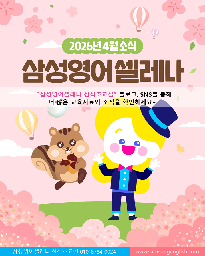 안녕하세요 학부모님 ^^ 한층 따뜻한 4월 기다리고 있습니다. 4월에 중고등 중간고사 대비가 시작되고, 초등친구들은 5월의 가정의달 Market Day도 있어서 바쁜 한 달인데요. 가정에서 셀레나와 링고핏 온라인과제 열심히 할 수 있도록 격려해주세요! 그리고 문법 새롭게 시작한 456학년 친구들 개별적으로 저에게 feedback 말씀해주시면 적극 수용하겠습니다. 또 하나, 중고등 내신 준비하는 친구들은 다들 나올수 있도록 각별히 신경쓰겠습니다!! 궁금하신 사항 주저하지 마시고 문자주세요. 일교차가 심합니다. 건강 유의 하시길 바랍니다.❤️ <img src="https://blogthumb.pstatic.net/MjAyNjAzMjZfMTQz/MDAxNzc0NTAzNzE0Nzc3.FkN5zFHPZDUTkcqtDx6d01a-UHT_lRpRUgK8shUnmYUg.ebw_TOcSzmXTVROr31dqdMThFWmA6PAVDfwuEaeQsjQg.PNG/1774483279638.png?type=s3" />