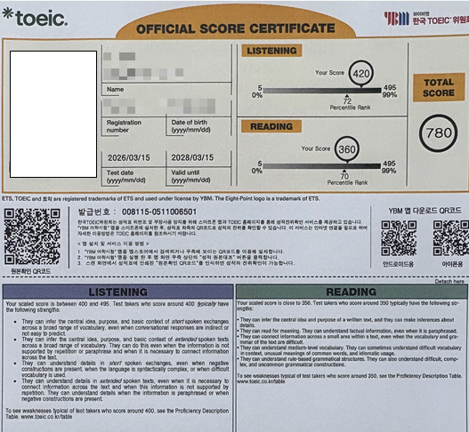[ 티플러스 어학원 ] 1:1 관리의 힘 토익 780점 완성!!