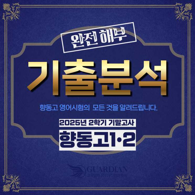 안녕하세요. 가디언어학원은 매 시험 종료 후 수업하신 선생님들이 직접 시험문제를 직접 풀어보고 원 시험 범위와 대조하면서 기출을 철저히 분석합니다. 이를 통해 출제자의 의도 학생들이 틀리는 이유를 정확하게 파악한 후 기본기를 확충하기 위한 정규 수업 그리고 전략적 시험 대비를 하기 위한 내신대비 수업의 커리큘럼과 교재 제작 계획에 반영합니다. 단지 보여주기를 위해서 AI 툴로 5분안에 끝나는 기출분석 단순 유형 통계 기출분석과는 목적도 차원도 다릅니다. 기출 분석은 수업을 하는 선생님이 문항 마다 단어 마다 선지 마다 아주 세밀하게 이루어져야 합니다. 연구의 깊이가 효과의 크기입니다. 향동고1 향동고2 <img src="https://blogthumb.pstatic.net/MjAyNjAxMTJfNjcg/MDAxNzY4MjA5ODAwMTUw.lpTLj_TaBzFTHXo_iU2W3d4Wxp4Rae3lj2KOPF9HIv4g.c3SLZwhDo18njRbZG5Kxm84PoQHF6Ocqw6c6s0nZGUgg.PNG/002.png?type=s3" />