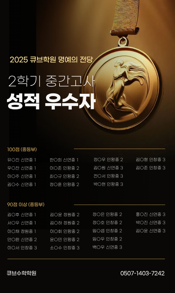 [홍제동 큐브수학학원] 25학년도 2학기 성적우수자를 자랑합니다.
